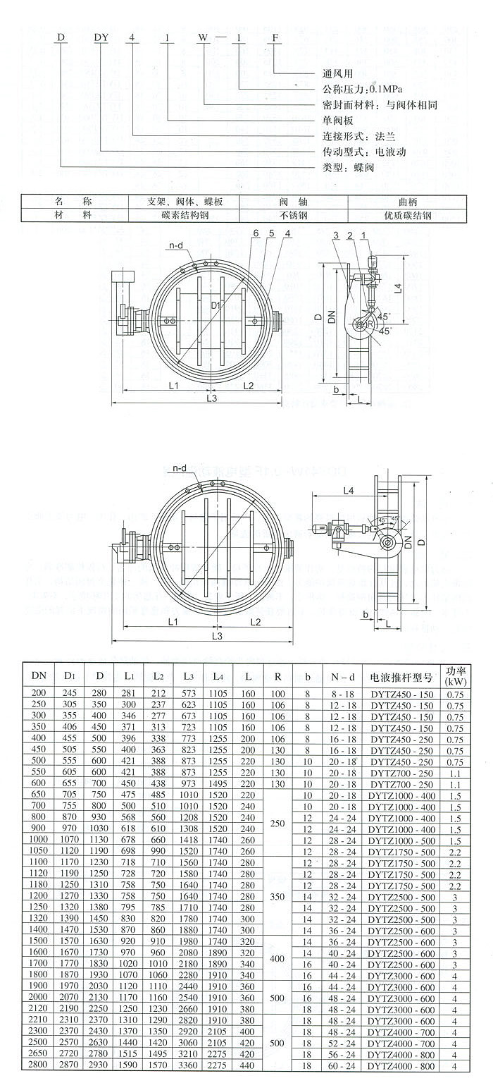 DDY41W-0.1F electro hydraulic ventilation butterfly